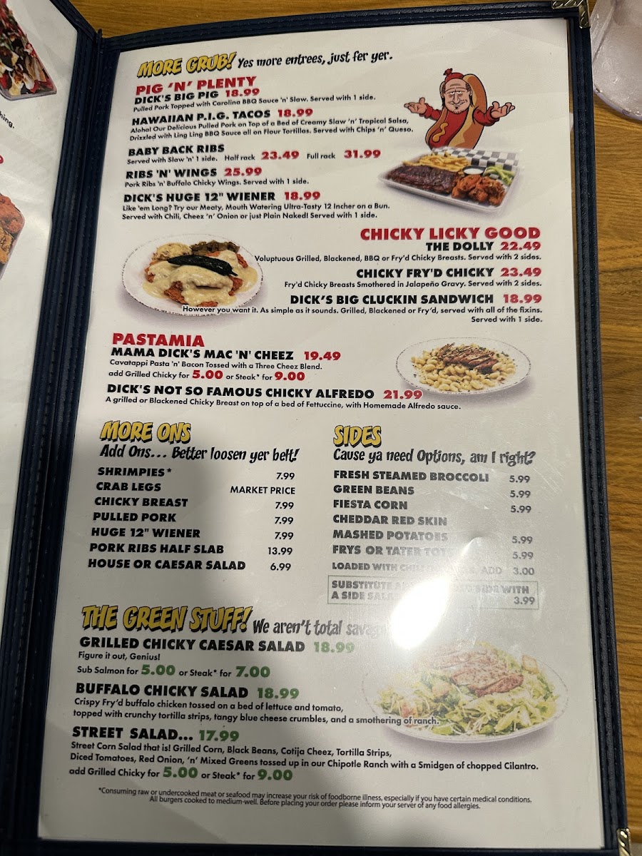 Located in a lively outdoor mall, parking can be a bit tricky, but the journey is worth every step. Customers rave about the involvement of the staff, who don’t just serve food; they bring the party to your table! From playful banter with the servers to spontaneous horse racing for the kids, Dick's creates a playful environment perfect for families and friends alike. It's the perfect chance to unleash your sense of humor and enjoy some light-hearted entertainment.